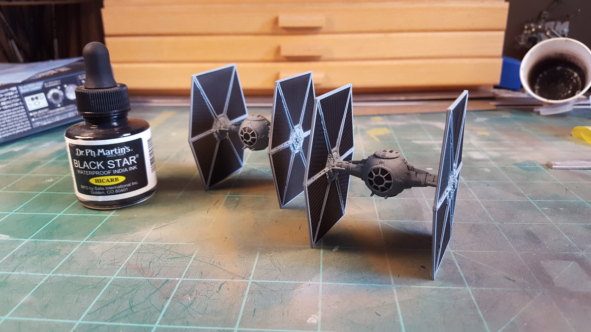 The first thing I did was build a couple of Bandai 1/144 scale Tie Fighters.