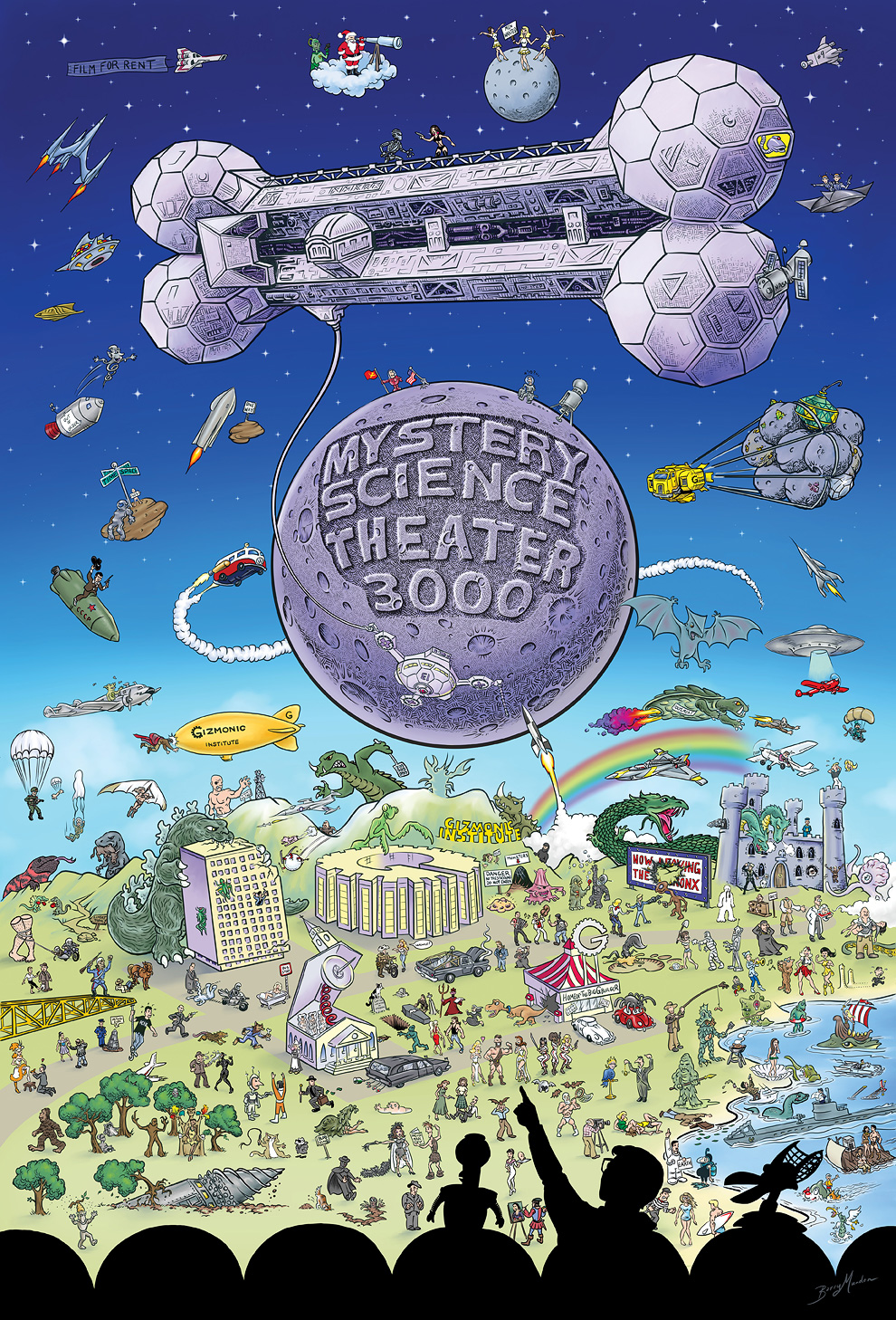 This piece is a tribute to one of my favorite TV shows of all time, Mystery Science Theater 3000. It contains cartoon references to all 200+ episodes. It was commissioned by Shout Factory for the launch of the new MST3K series. Digital, 27"x40"