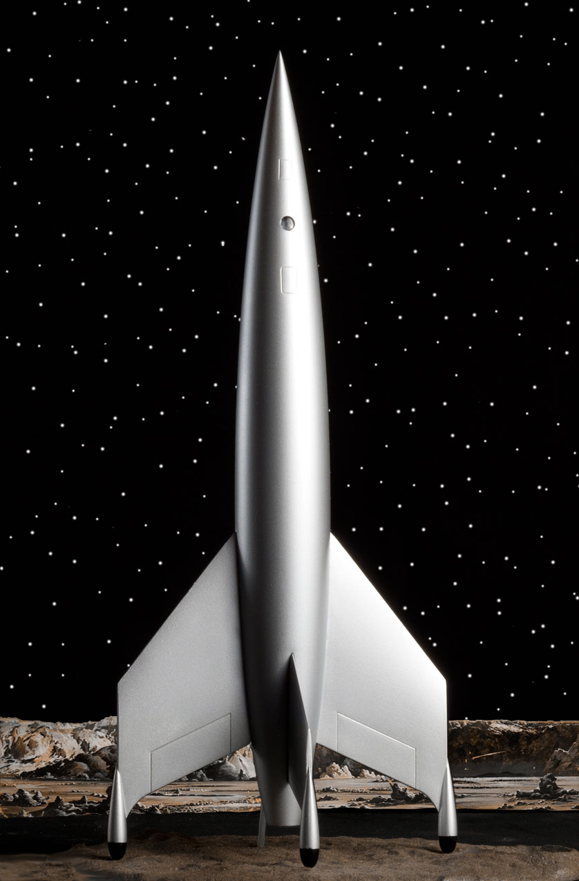 This is the Luna, from the 1950's SF film "Destination Moon". I photoshopped in a starfield to recreate the look and feel of the movie. I love the simple elegance of vintage spacecraft.