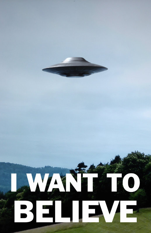 Here is another flying saucer, which you will likely recognize. Atlantis Models produced a model kit during the nineties of the saucer image made famous by the X-files. I found one and recreated the iconic poster using a stock photo and the model itself. The original poster itself has an interesting history: There were actually a number of posters hanging in Mulder's office, depending upon which episode you watched. The poster that appeared in the first few seasons was cropped from a photo by a Swiss flying saucer enthusiasist and resident weirdo Billy Meier (who also took his photos from models he built himself, according to his ex-wife). Billy called the network out for copyright infringement, so later episodes featured a photo they shot themselves in their back lot. This image uses a licensed stock photo and a model that I built and photographed myself, because I just wanted to have a poster of a UFO that wasn't blurry for a change.