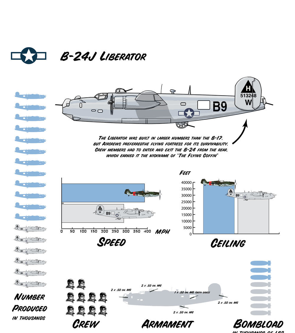 The B-24 outperformed the B-17 in most respects, was built in greater numbers and served in more numerous combat roles during the war, but never really won the hearts and minds of the people the way the B-17 did. It flew like a truck and lacked the legendary ruggedness of the B-17. It was kinda homely, too, so the B-17 went on to a successful movie career while the B-24 retired into postwar obscurity. Actor Jimmy Stewart flew B-24's during WWII.